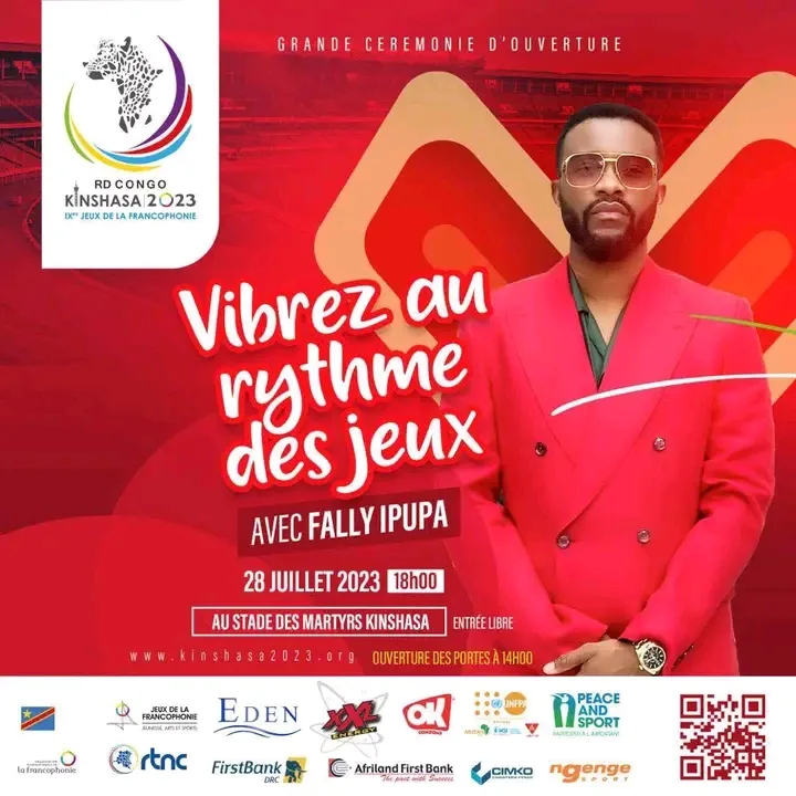 L’artiste musicien congolais Fally Ipupa a annoncé ce jeudi 27 juillet 2023 qu’il va prester à la cérémonie d’ouverture des IXèmes jeux de la Francophonie ce vendredi à Kinshasa.