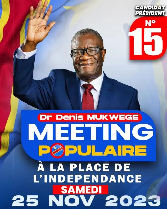 Selon un message de la dynamique « Docteur Denis Mukwege Président », ce meeting du candidat numéro 15 aura lieu à la place de l’indépendance.