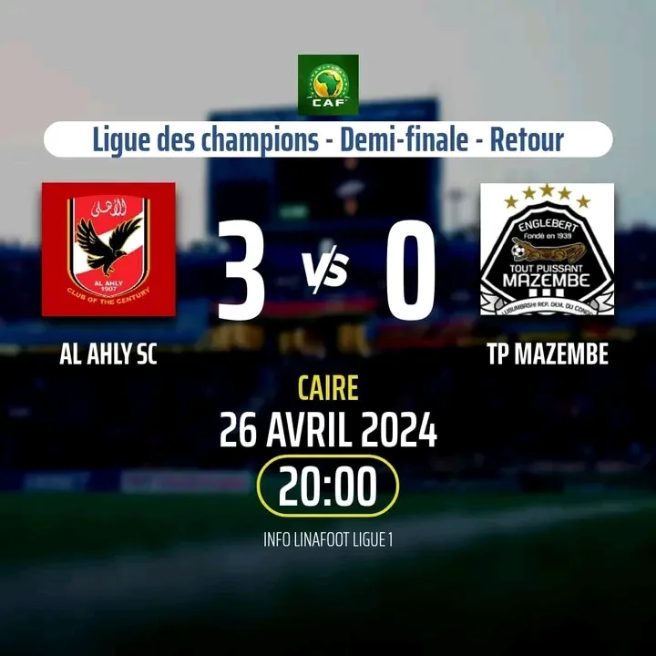 Champions League de la CAF : Le TP Mazembe éliminé en demi-finale après sa défaite de 3-0 face à Al Ahly