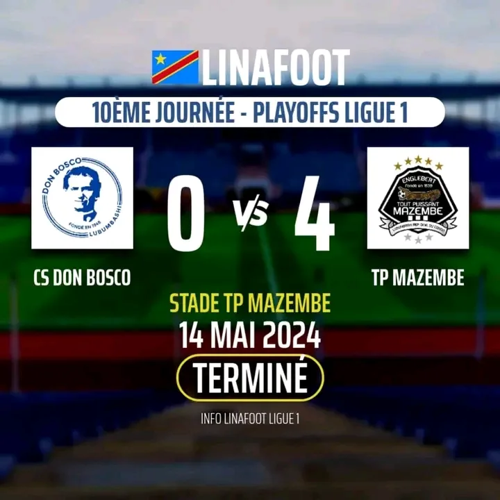 Ligue 1 Play offs : Le TP Mazembe s’impose 4-0 devant s’offre largement Don Bosco et se rapproche du titre
