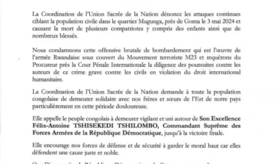 Le président de la République Félix-Antoine Tshisekedi Tshilombo se dit consterné par le nouveau crime de guerre à Goma après le meurtre de plusieurs congolais à...