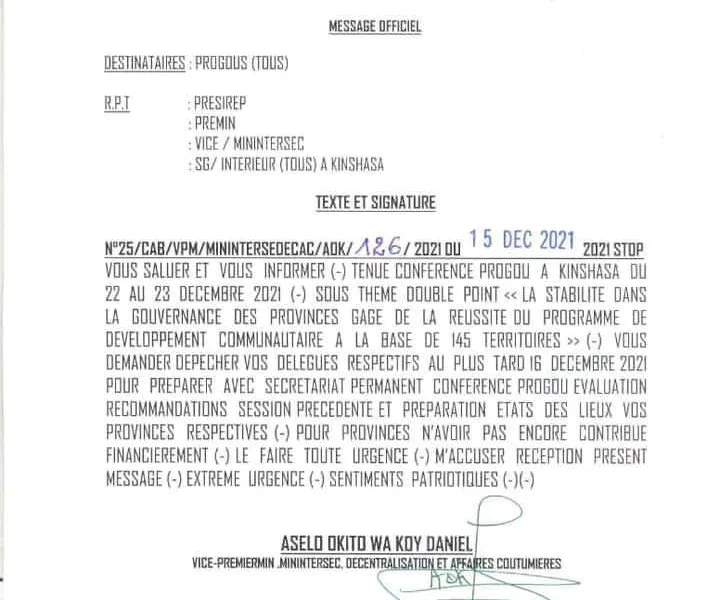 Le vice-Premier ministre en charge de l’Intérieur, sécurité, décentralisation et Affaires coutumières a lancé une invitation à tous les gouverneurs des provinces pour leur participation à...